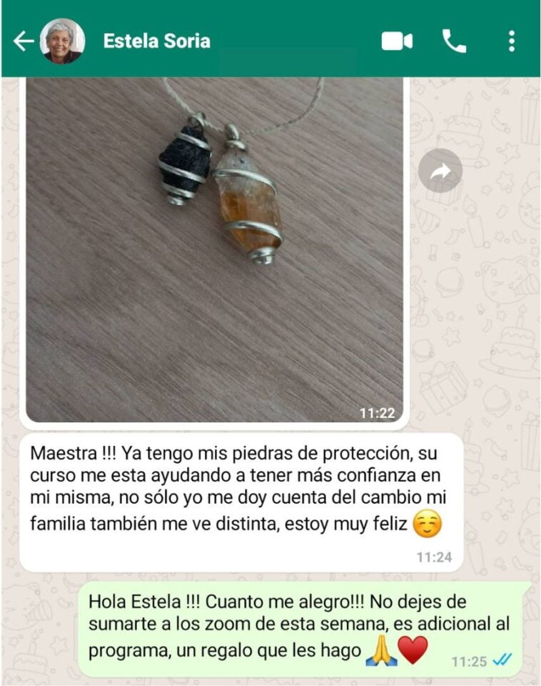 Estoy maravillada con esta nueva experiencia, he aprendiddo desde cero  como desbloquear mis centro energéticos, hoy me siento una mujer nueva. Recomiendo 100% esta capacitación.Gracias !!!